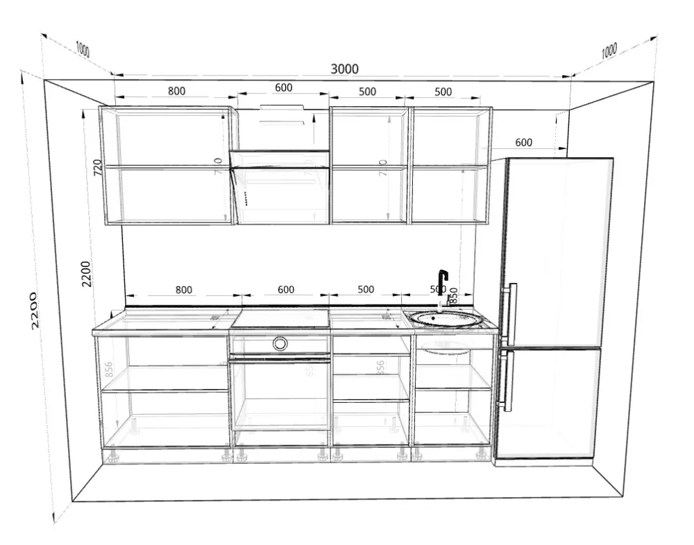 Ручки, столешница, стеновая панель, мойка, смеситель и бытовая техника продаются отдельно.